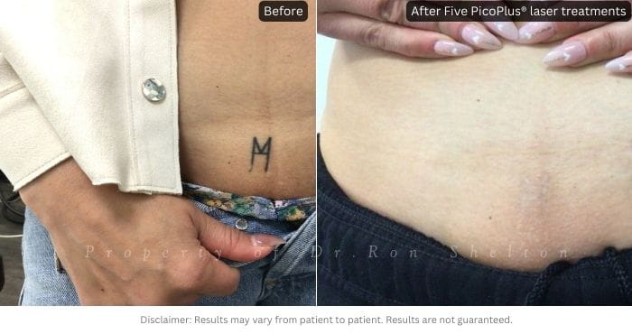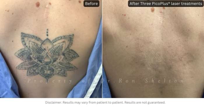 - Post 3 PicoPlus, 1064nm. laser treatments for tattoo removal. Slight hyperpigmentation from her skin response which is fading.